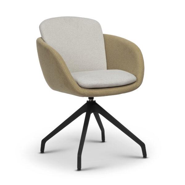 כסא מרופד עם רגל מעוצבת ומנגנון מסתובב