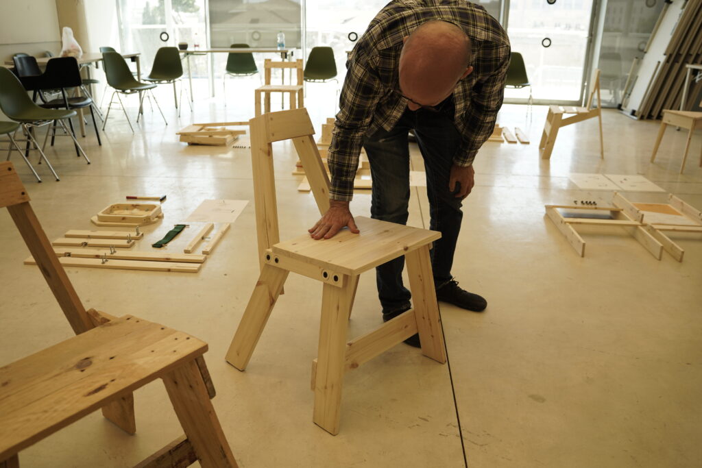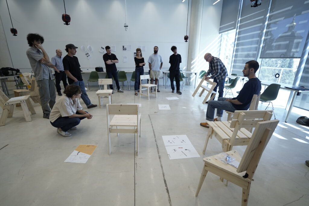 הסטודנטיות והסטודנטים הציגו את הכיסאות שתכננו ובנו, כשחלק מהאתגר היה להרכיב אחד את הפרויקטים של השני ולבסוף לתת משוב לחבריהם. חוויית למידה שיתופית, מחויבת ומעוררת השראה שאנחנו נהנים לקחת בה חלק כל שנה.