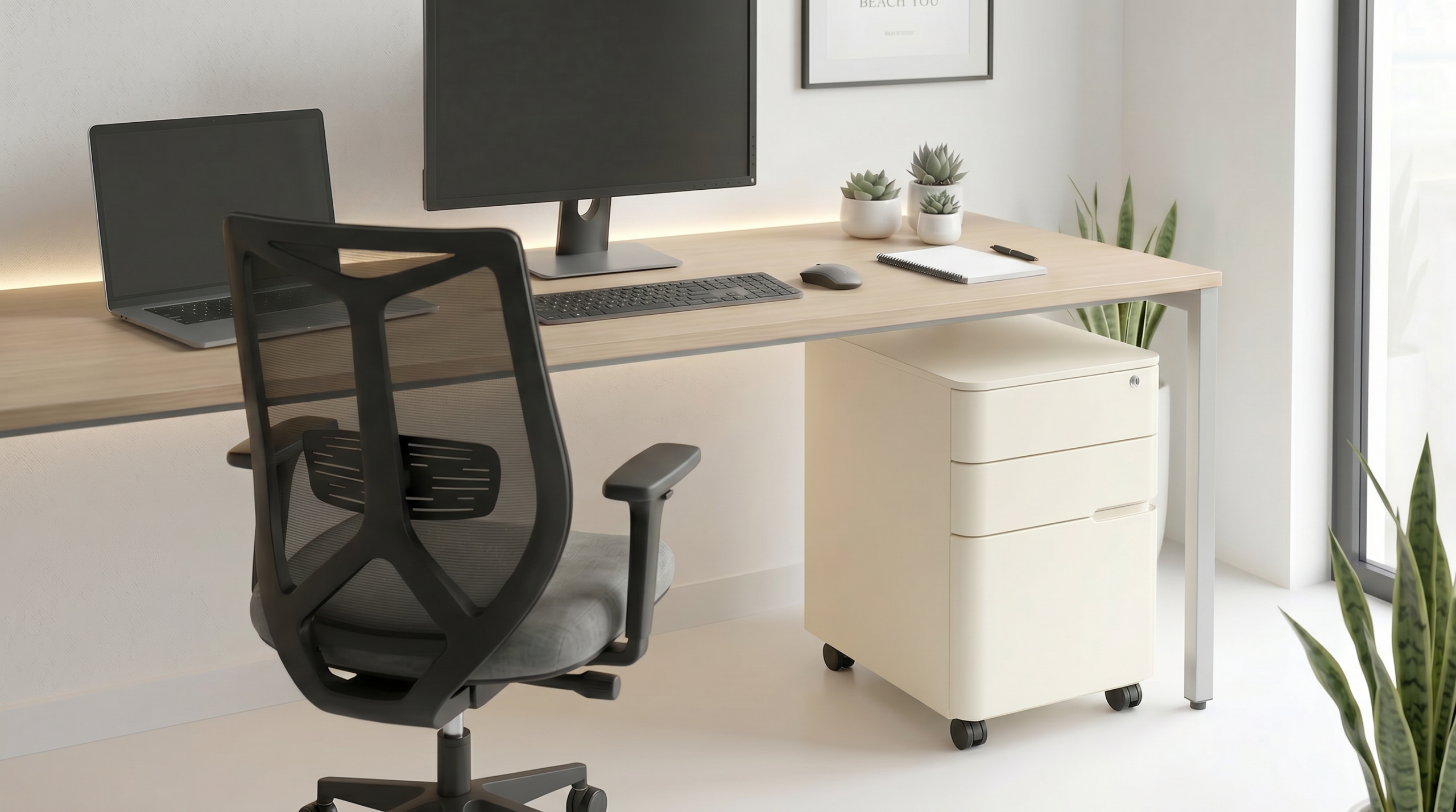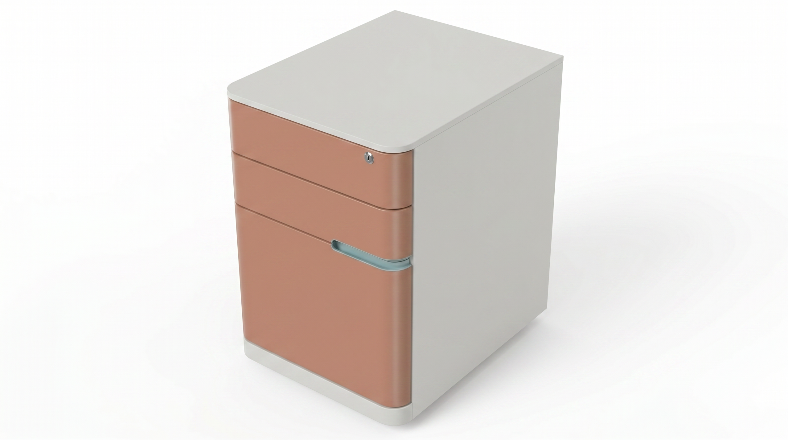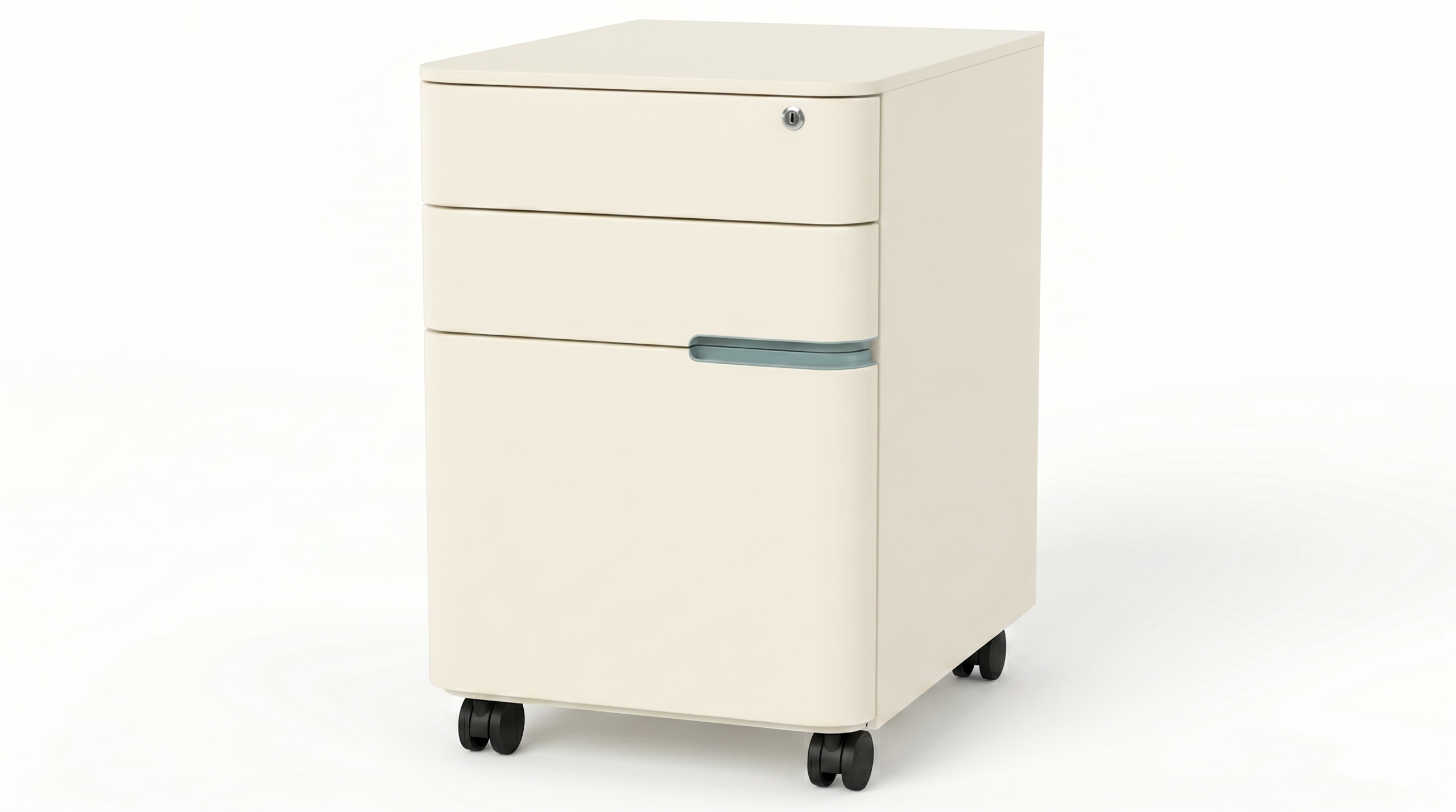 יחידת אחסון קומפקטית וניידת על גלגלים, הכוללת מגירה עליונה עם נעילה לאחסון בטוח, לצד מגירות נוספות לארגון מסמכים וציוד אישי. מבנה יציב בעיצוב מודרני ונקי, המתאים להצבה לצד שולחן עבודה במשרדים, חללי עבודה וחדרי שינה.