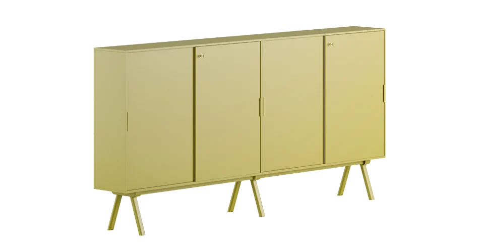 השידה כוללת מספר תאי אחסון עם דלתות סגורות, ליצירת מראה אחיד ומסודר בחלל.