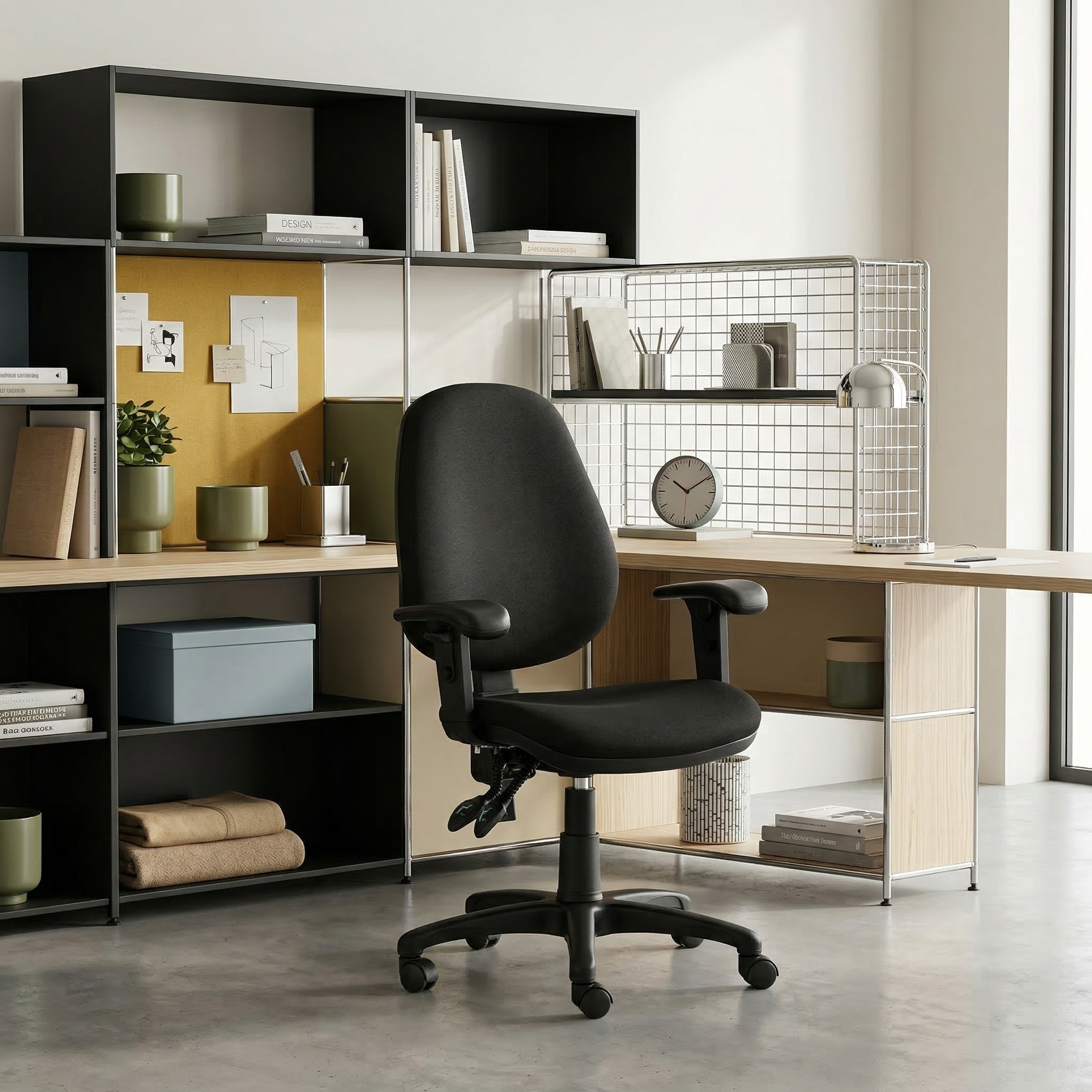- כסא עבודה מתקדם בעל אפשרויות רבות של התאמת מנגנונים, שינוי זווית הגב, שינוי גובה הגב, שינוי זווית הכיסא,